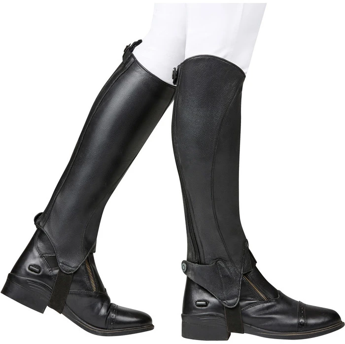 - Soft and durable full cow leather half chap designed for a close feel.