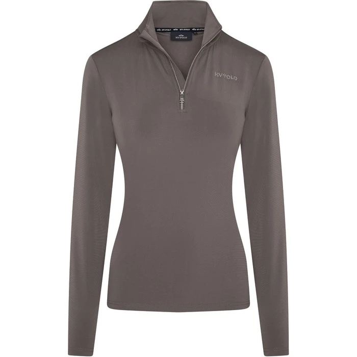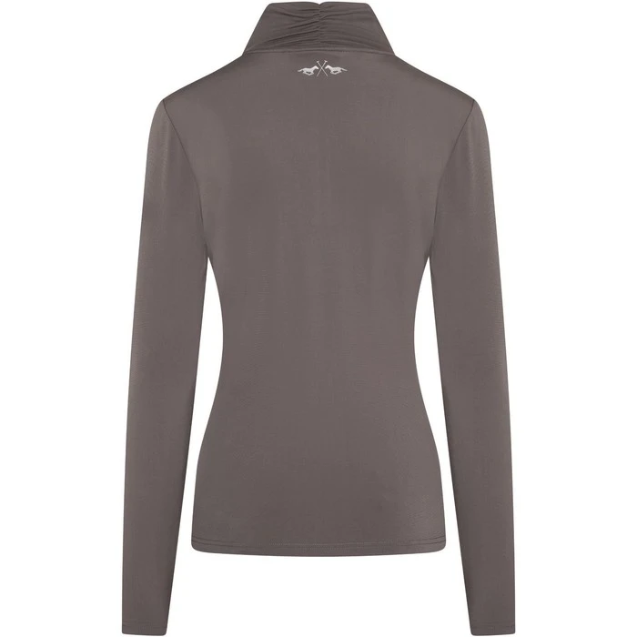 Sporty pully with zipper. Easy to combine and a must have for every equestrian wardrobe. Text logo on the chest in rich crystal clear rhinestones. The backside collar is nicely gathered in small pleats. The logo is placed under the centre back neck line and a small tab label in the side seam.