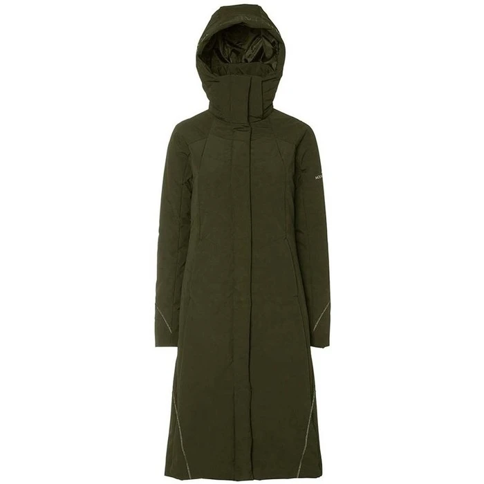 Functional light weight water- and windproof padded coat with feminine fit. Reflective details at front, back and sleeves. Riding slit at back and detachable hood.