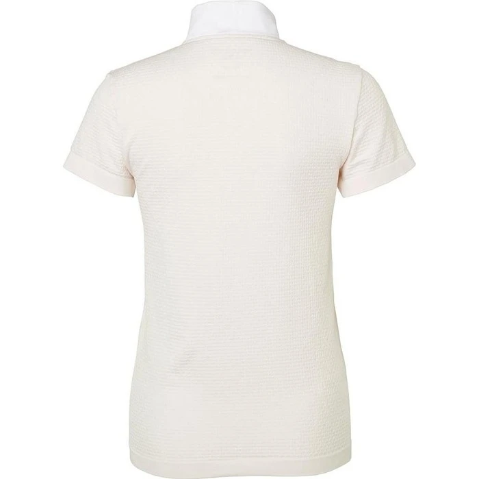 Feminine seamless competition tech top with a white collar suitable for competition.