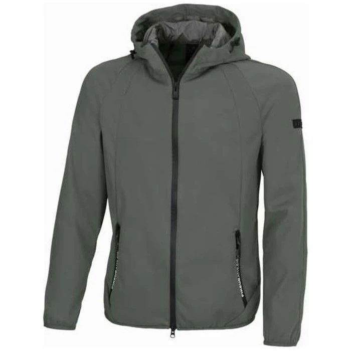 Sporty athleisure men’s jacket made of bi-elastic softshell with comfortable 4-way stretch for best freedom of movement. Its functional diversity impresses with a fast-drying, highly wind- and water-repellent outer material, which in no way affects the excellent breathability. The OSKAR also has waterproof zips with attractive print labeling. The sporty seams, raglan sleeves, and prints in a matt look optimally emphasise the athleisure look. Includes a hood that can be adjusted with an integrated zipper.