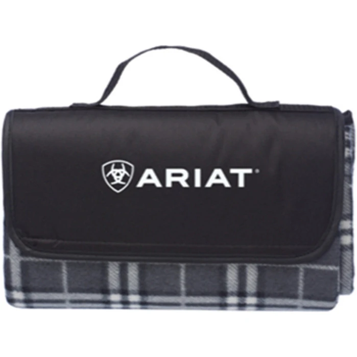 Designed with a classic check pattern and featuring a practical carry handle, this picnic blanket can be rolled up and secured when not in use – practical and versatile.