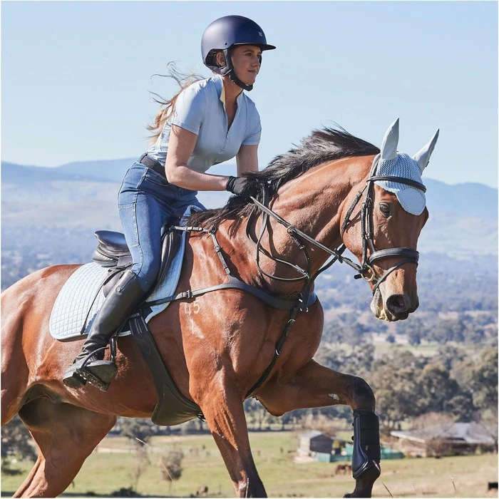 A great breathable short sleeved versatile top made from bi-stretch jersey fabric with sun protection factor 50+ and a peached outer. Featuring Comfort Dry Technology that will perform for you no matter what the weather providing moisture control for all day comfort. Mesh side panels, under sleeves and back yoke. The peached outer works to shed dirt, hay and horse hair, to keep you looking smart. A stand up collar with half zip placket, in a semi fitted style to offer a comfortable fit.