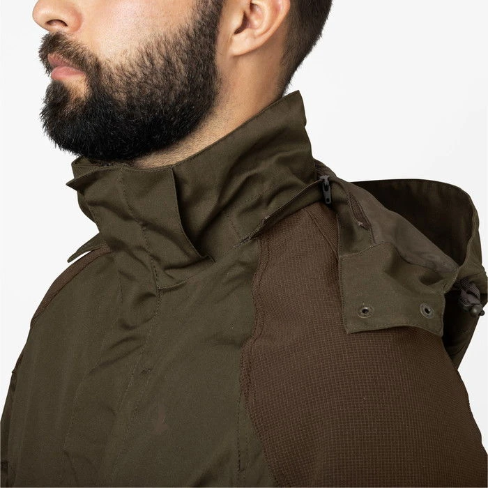 The sleek and elegant Arden jacket is the ideal choice for bird shooting and small game hunts. It features two large cartridge pockets with drain holes, a game pocket on the back, and quick-load straps for easy cartridge access. The stretchable Seetexยฎ membrane ensures comfort and dryness, while the bottom of the jacket boasts an anti-soaking lining to prevent moisture absorption on rainy days.
