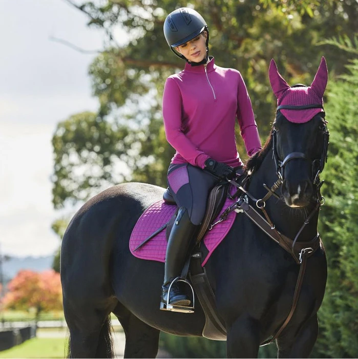 The WeatherBeeta Prime All Purpose Saddle Pad is a durable cotton pad with a polyester wick easy lining helping to keep your horse cool, dry and comfortable. The breathable mesh spine allows extra airflow to your horse’s back, whilst the high wither design provides extra space where needed to help prevent pressure spots. The covered girth patch offers durability and girth loops for a secure fit. Attachment to the D-rings is made simple with short touch tape loops for a secure fit under saddle. Machine washable at 30 degrees. DO NOT tumble dry. Matching range available. Comes in Pony and Full sizes.