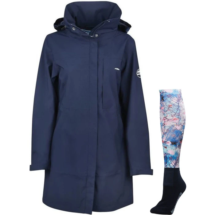 The WeatherBeeta Everly Jacket is a technical waterproof, windproof and breathable jacket with sealed seams for optimum protection. Designed with an A-line shape with back hem saddle gusset for freedom of movement, double puller front zip and snaps to close. The underarm zip vents with technical mesh offer ventilation and comfort and the funnel stand collar with fold away hood provides protection from the elements. The cuffs offer adjustable tape tabs with a longer back hem perfect for riding.