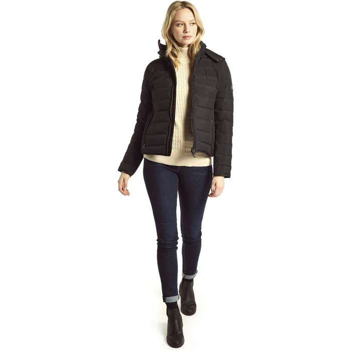 The Kilkelly Jacket by Dubarry is a ladies short down jacket with a removable hood. With a down fill weight of 170g/m2 and cosy handwarmer pockets, this jacket is perfect for winter.