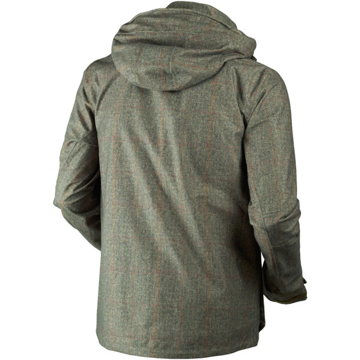 Versatile jacket in printed tweed which has the benefit of not taking up water like ordinary tweed, so the suit remains lightweight. With the new HWS membrane technology, which is silent, windproof and waterproof.