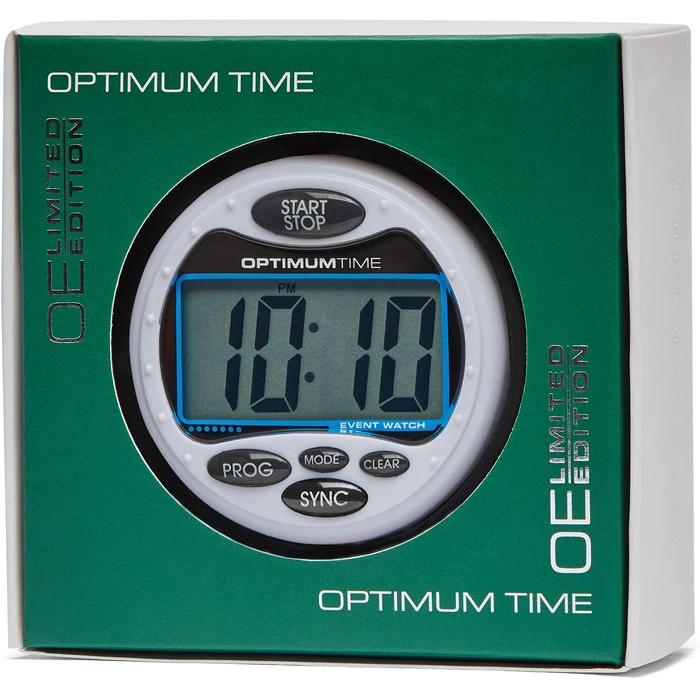 The Optimum Time Event watch also benefits from an adjustable viewing angle, a fully adjustable elastic strap, carriage mounting option and is water resistant.